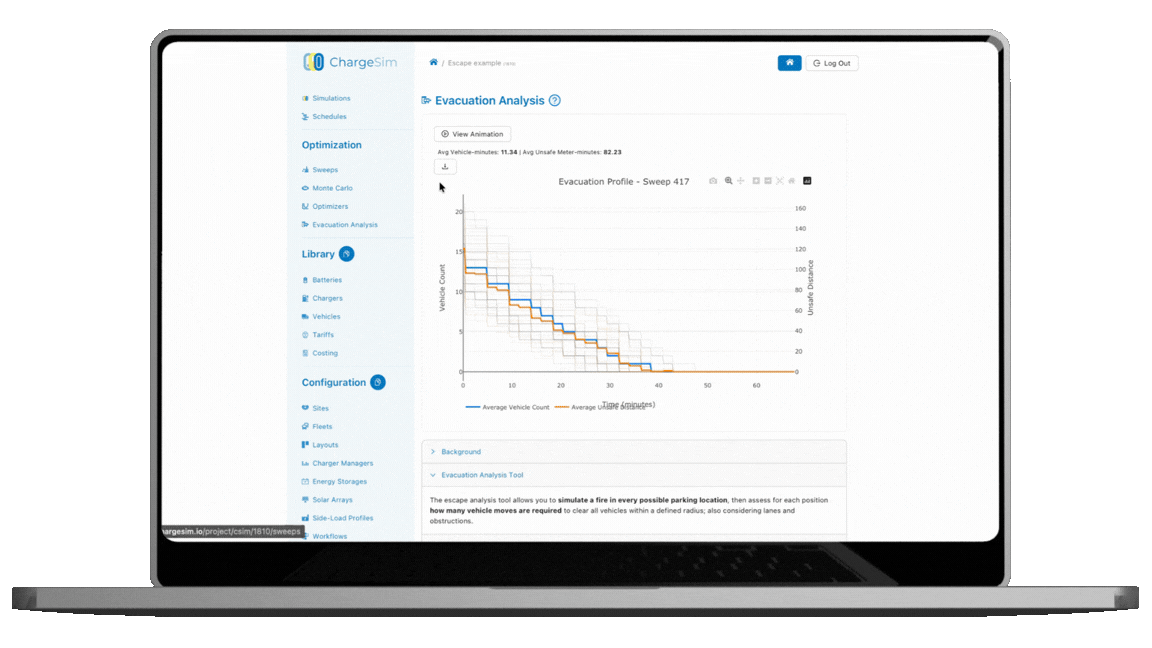 See how quickly vehicles can evacuate safely, and where evacuation challenges occur.